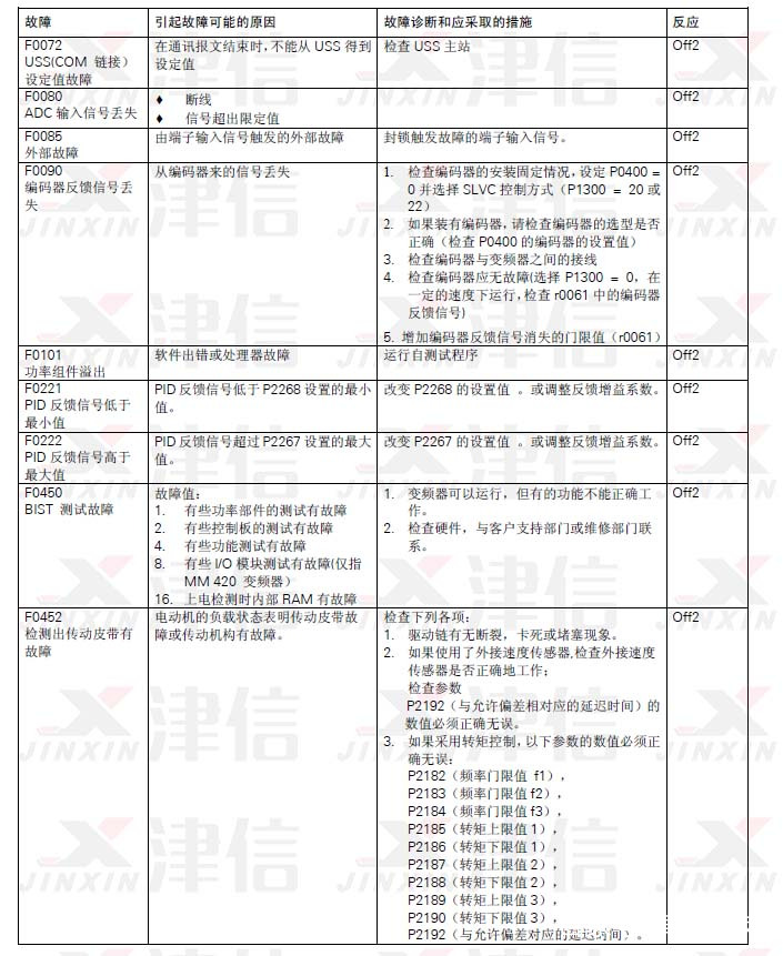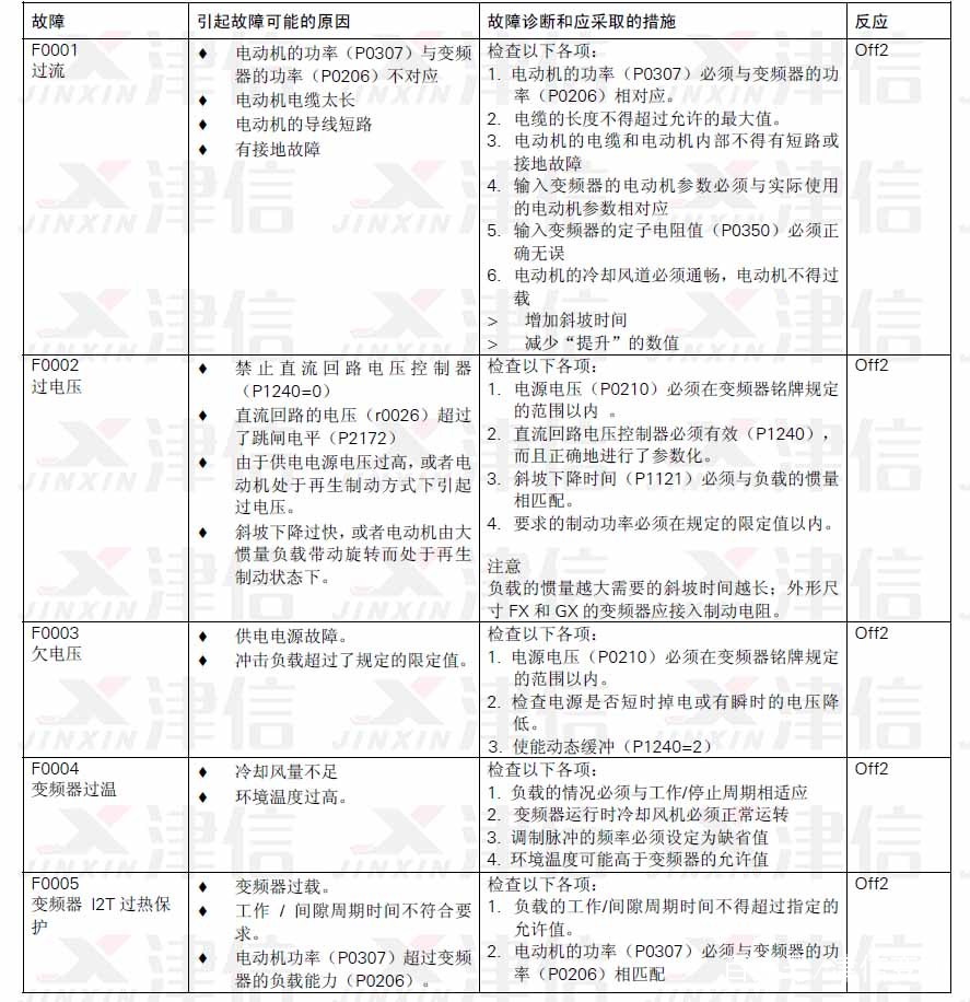 西門子變頻器在發(fā)生故障時,會在LED顯示屏上出現(xiàn)故障代碼,故障代碼是以F開頭的5位數(shù)表示,F(xiàn)代表Fault。