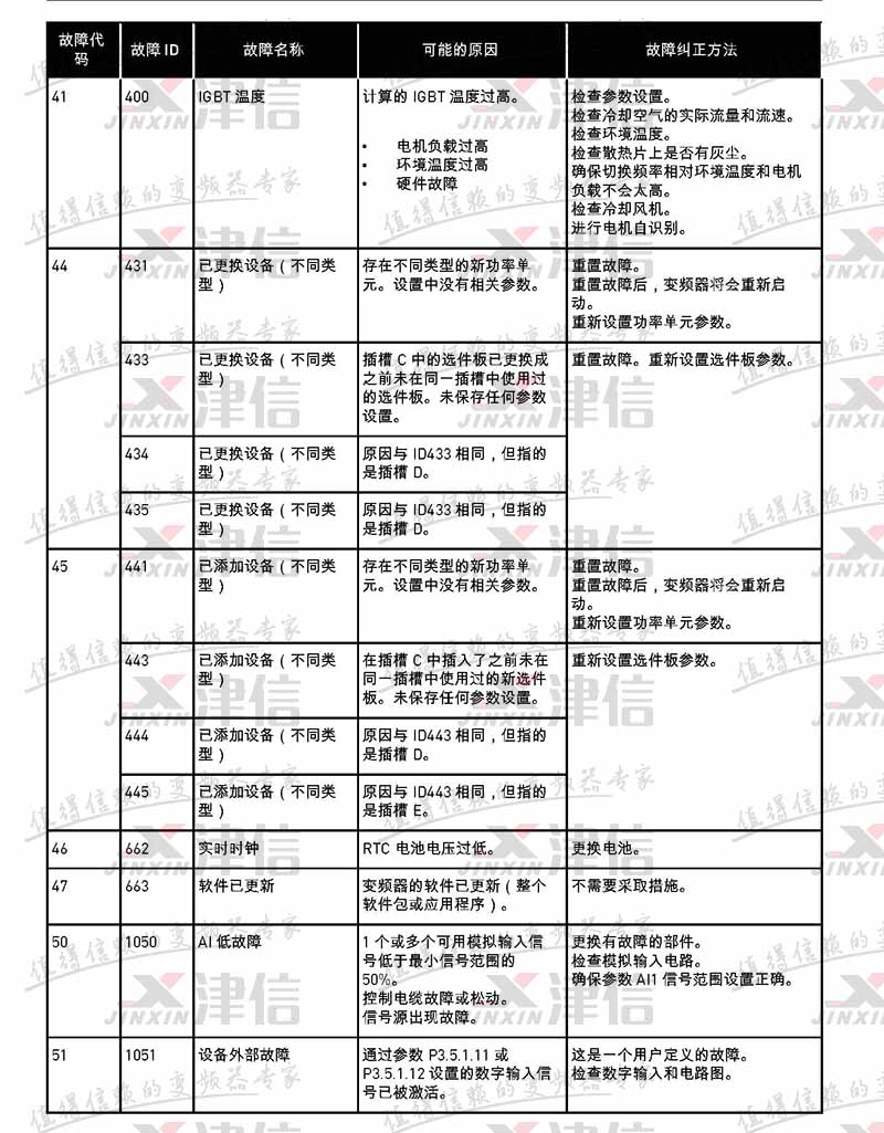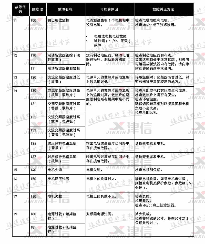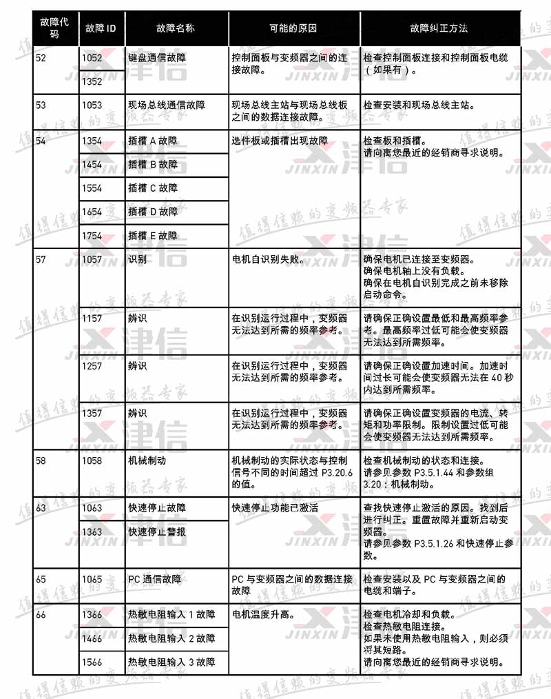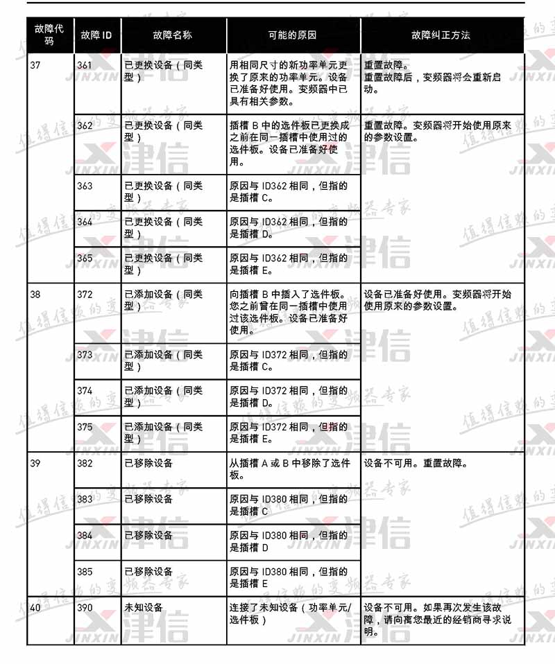 故障代碼 故障 ID 故障名稱 可能的原因 故障糾正方法