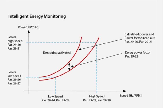 基于工況的凈化在運行期間,能耗監測系統會檢測泵送作業的能耗是否超過預期。出現此類情況時,說明泵已經開始堵塞,需采用凈化來防止進一步堵塞。VLT® AQUA Drive內置凈化功能,可啟動基于工況的清潔循環,對泵實施預防性維護。